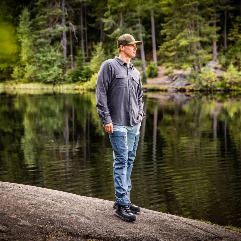 For at give dig suveræn pasform og bevægelsesfrihed er buksen skåret med formskårede knæ og ekstra kile i skridtet og i 4-vejs strækbart materiale, så den følger alle dine bevægelser, uanset om du vandrer i blokmark, eller skal springe over væltede træer og vandløb i skoven…