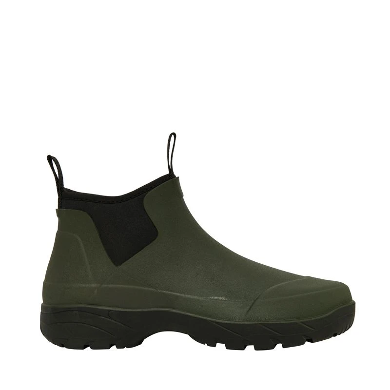 - Gummistøvle fremstillet i et laminat af neopren og gummi, hvor neopren sikrer en unik pasform og gummiet gør støvlen helt vandtæt